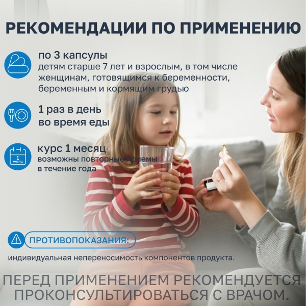 Перед применением БАД детьми необходимо проконсультироваться с врачом-педиатром. Детям до 14 лет принимать БАД по согласованию и под наблюдением врача-педиатра.