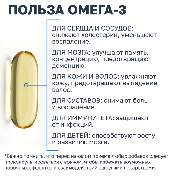 Рекомендуется в качестве дополнительного источника полиненасыщенных жирных кислот (ПНЖК) омега-3 (в том числе докозагексаеновой и эйкозапентаеновой кислот).