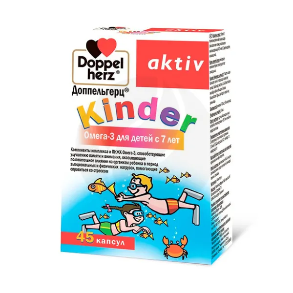 ✓ Цена на Доппельгерц Киндер Омега-3 капсулы, №45 указана на сайте и в мобильном приложении