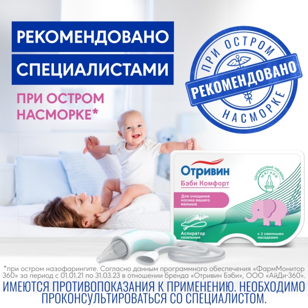✓ Цена на Отривин Бэби Комфорт аспиратор назальный с 2 мягкими насадками указана на сайте и в мобильном приложении