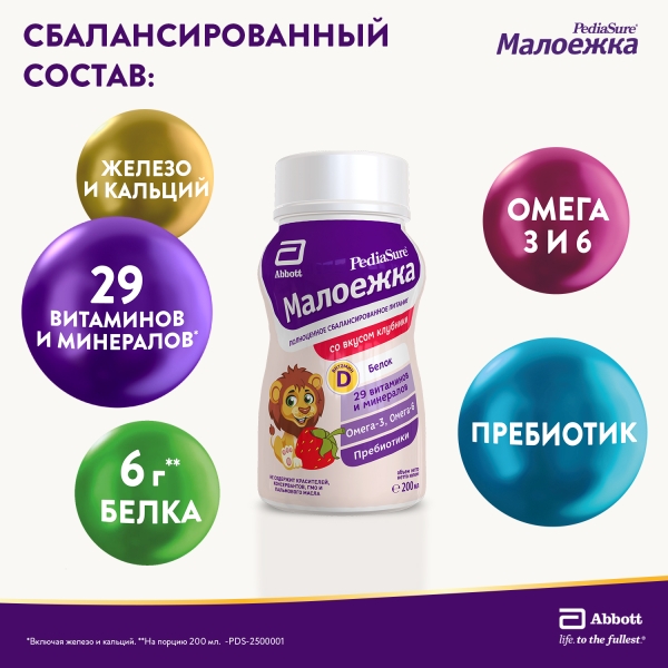 ✓ Цена на PediaSure МАЛОЕЖКА жидкая смесь со вкусом клубники (12+мес), 200мл указана на сайте и в мобильном приложении