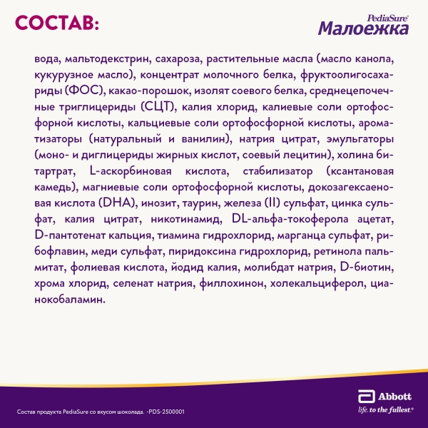 ✓ Подробная инструкция по применению PediaSure МАЛОЕЖКА жидкая смесь со вкусом шоколада (12+мес.), 200мл