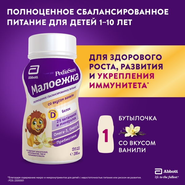 ✓ Цена на PediaSure МАЛОЕЖКА жидкая смесь со вкусом ванили (12+мес), 200мл указана на сайте и в мобильном приложении