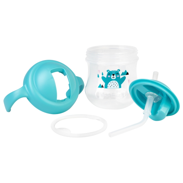 Поильник-непроливайка Pigeon MagMag поможет малышу научиться самостоятельному питью. Уникальная конструкция безопасной трубочки позволяет выпить все до последней капли. Двойной фиксатор предотвращает случайное протекание. Благодаря специальному клапану, выравнивающему давление, содержимое не проливается из чашки. Удобный замок-слайдер позволяет легко открыть поильник. Малышу легко и просто держать поильник благодаря эргономичным ручкам. Удобно брать с собой на прогулку, в дорогу. Подходит для любых напитков. Поильник разборный и прост в уходе. Легкий и безопасный материал, не содержит Бисфенол А. Яркий стильный дизайн с милым Мишкой. Поильник рекомендован для детей с 8 месяцев. Сменную трубочку можно приобрести отдельно.