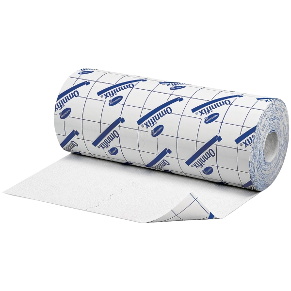 Гипоаллергенный фиксирующий пластырь в рулоне из белого нетканого материала с синтетическим каучуковым клеем, благоприятным для кожи.