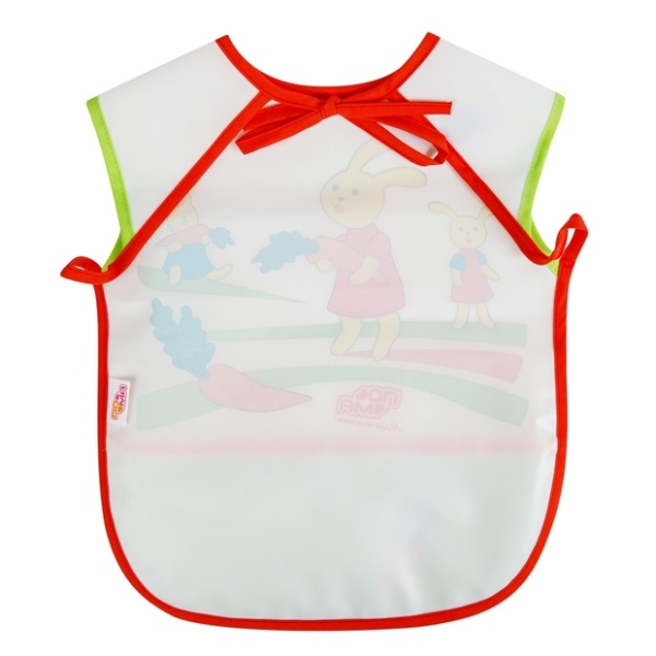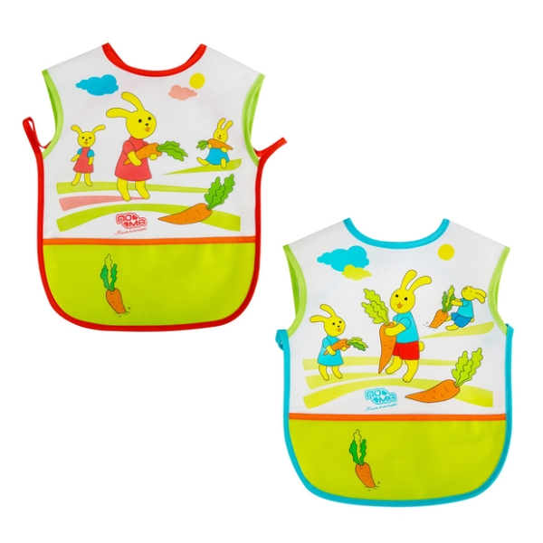 Слюнявчик клеёнчатый на завязках и с карманом, 1 шт. Одежда малыша не запачкается во время еды. Легко и быстро мыть.