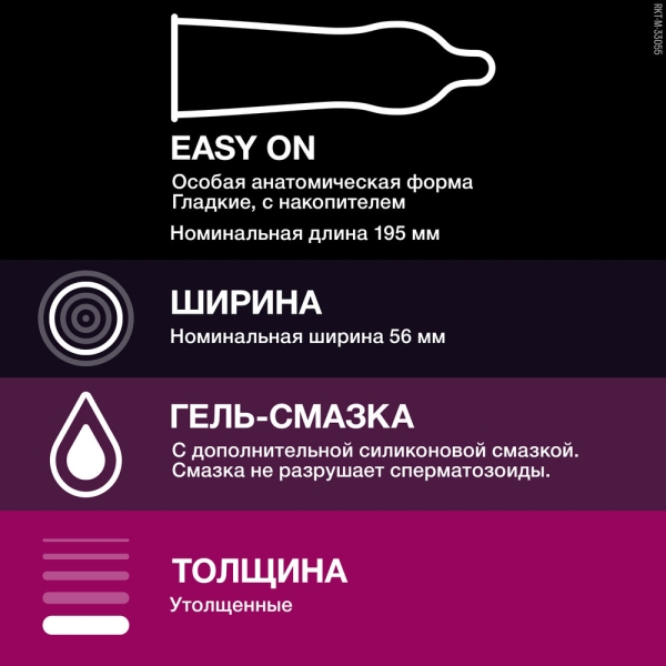 Бесцветные, анатомической формы, гладкие, с накопителем, с дополнительной силиконовой смазкой. Смазка не разрушает сперматозоиды.