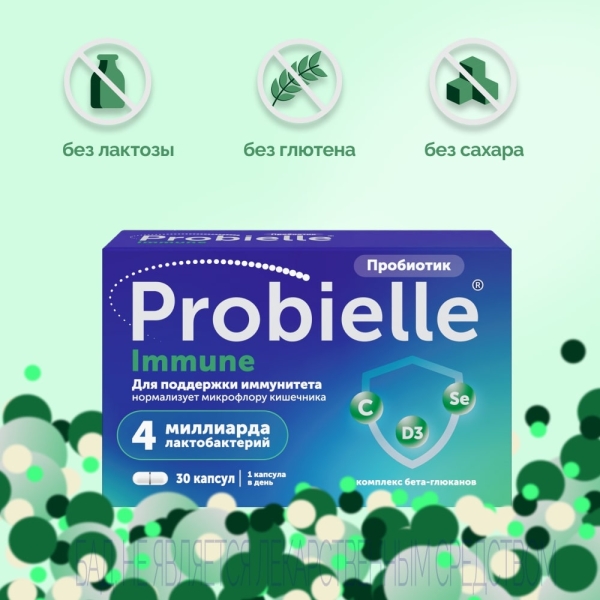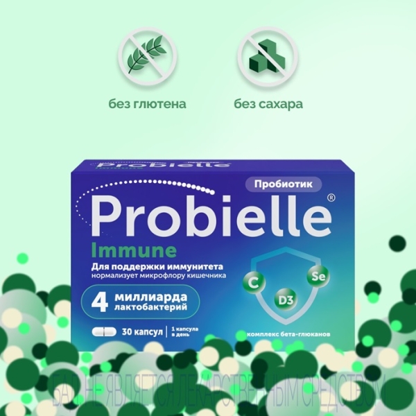 Probielle® Immune может использоваться в качестве средства для нормализации микрофлоры кишечника и для поддержки иммунной системы во время повышенной нагрузки на иммунитет: