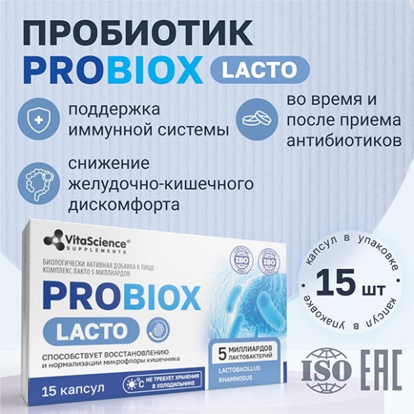 ✓ Цена на Vitascience Пробиокс Лакто капсулы, №15 указана на сайте и в мобильном приложении