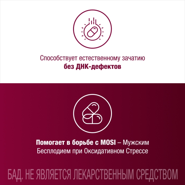 L-Карнитин: образуется в организме и обеспечивает энергетическим субстратом клетки, продуцирующие сперматозоиды. L-Карнитин улучшает подвижность и качество сперматозоидов.