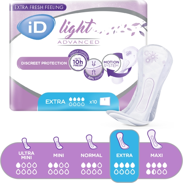 Урологические прокладки iD LIGHT размеров Extra разработаны для женщин, которым нужен удобный и надежный продукт для использования при средней степени недержания мочи. Они хорошо впитывают, защищают от протеканий по бокам благодаря специальным бортикам, а также блокируют неприятные запахи. Мягкие, как хлопок, материалы дарят ощущение комфорта. Прокладки iD LIGHT не стесняют движений, что позволяет вести активный образ жизни, как обычно. Дизайн прокладок с цветочным принтом создан специально для женщин, которые обращают внимание на каждую деталь своего образа и для которых важно всегда чувствовать себя женственными. А чтобы прокладки удобнее было брать с собой, каждая из них упакована индивидуально.