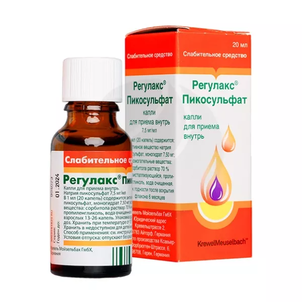 ✓ Цена на Регулакс пикосульфат капли д/приема внутрь 7,5мг/мл, 20мл указана на сайте и в мобильном приложении