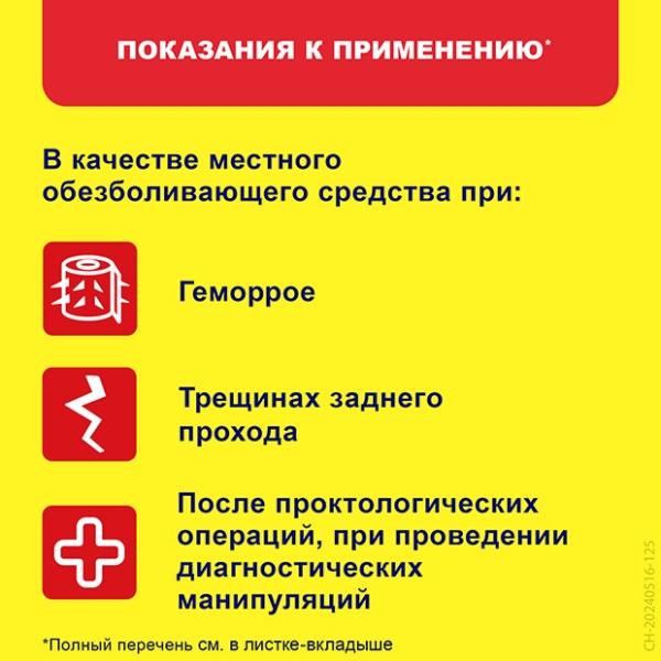 Препарат Релиф® Адванс применяется у взрослых и детей в возрасте старше 12 лет в качестве местного обезболивающего средства при геморрое, трещинах заднего прохода, после проктологических операций, при проведении диагностических манипуляций.