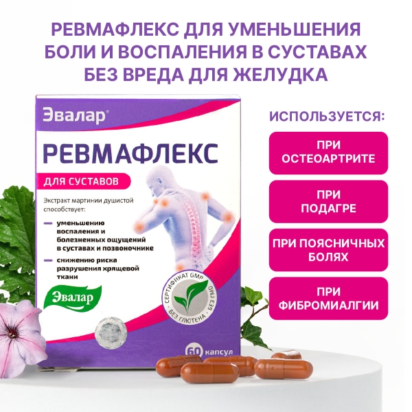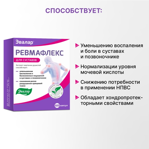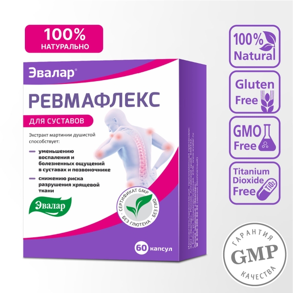 ✓ Купить Эвалар Ревмафлекс капсулы, №60 можно на сайте, в мобильном приложении и в аптеках Вита