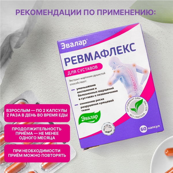 ✓ Подробная инструкция по применению Эвалар Ревмафлекс капсулы, №60