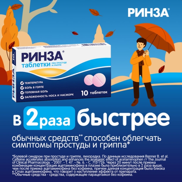 ✓ Цена на Ринза таблетки, №10 указана на сайте и в мобильном приложении