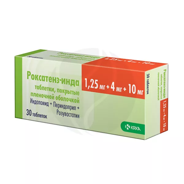 Роксатенз-инда – комбинированный препарат, содержащий периндоприл – ингибитор ангиотензинпревращающего фермента (АПФ), индапамид – тиазидоподобный диуретик и розувастатин – селективный, конкурентный ингибитор ГМГ-КоА-редуктазы (статин). Механизм действия препарата основан на фармакологических свойствах каждого из действующих веществ и аддитивного синергического действия периндоприла и индапамида.