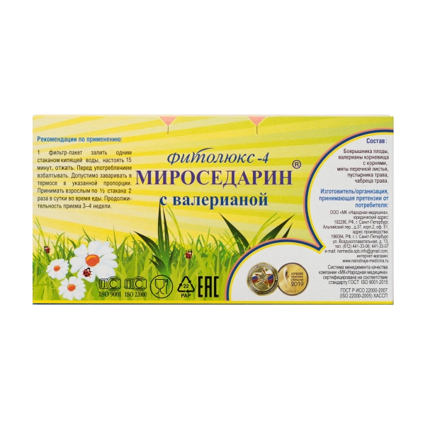 ✓ Подробная инструкция по применению Сбор Фитолюкс 4 Мироседарин успокоительный с валерианой 1,5г, №20