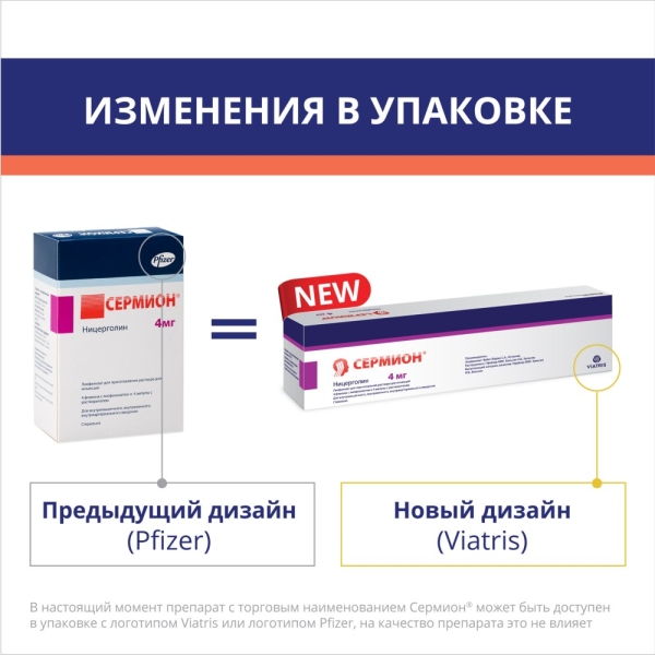 ✓ Цена на Сермион лиофилизат для приг.р-ра д/инъекций 4мг, №4 Виатрис указана на сайте и в мобильном приложении