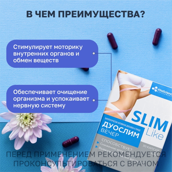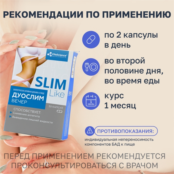 ✓ Купить Vitascience Дуослим вечер капсулы, №30 можно на сайте, в мобильном приложении и в аптеках Вита