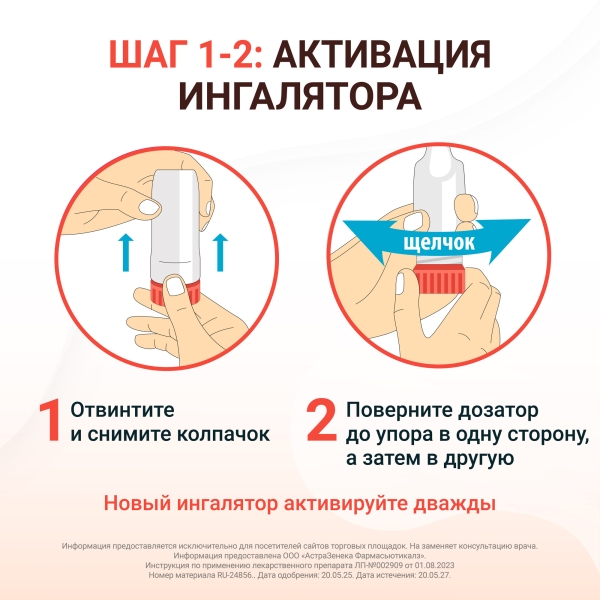 Подготовка ингалятора Турбухалер® к первому использованию