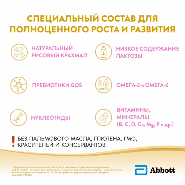 Специальный состав Similac Антирефлюкс для полноценного роста и развития: