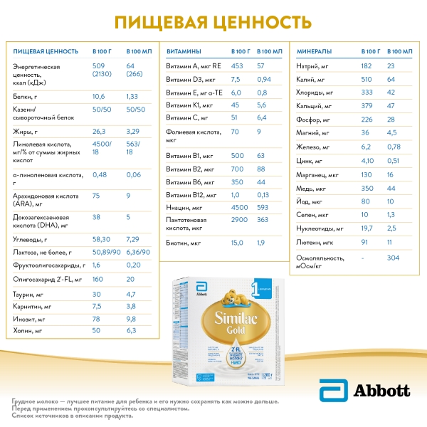 ✓ Подробная инструкция по применению Similac Gold 1 сухая молочная смесь (0-6мес), 1200г