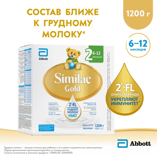 ✓ Цена на Similac Gold 2 сухая молочная смесь (6-12мес), 1200г указана на сайте и в мобильном приложении