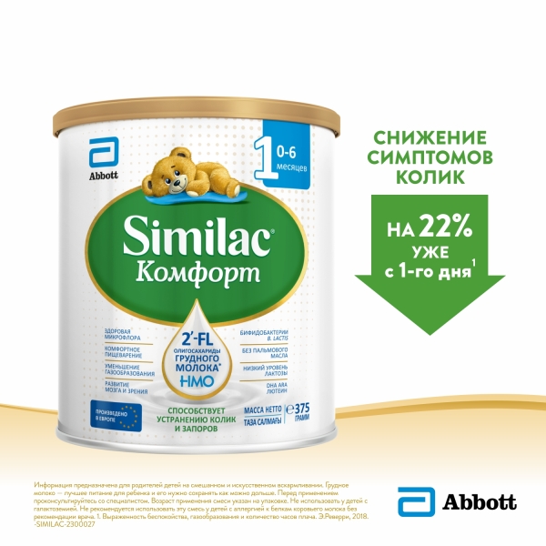 ✓ Цена на Similac Комфорт 1 молочная смесь (0-6мес), 375г указана на сайте и в мобильном приложении