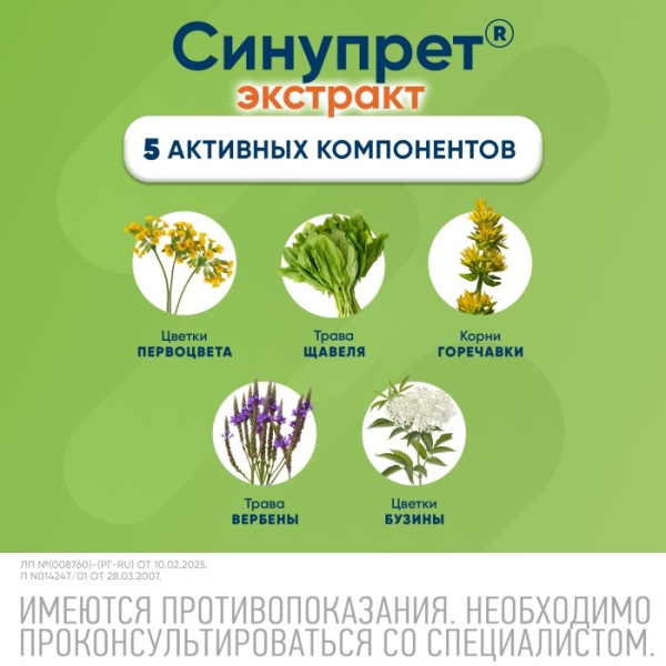 Синупрет® экстракт представляет собой препарат растительного происхождения, активным компонентом которого является сухой экстракт смеси лекарственного растительного сырья.