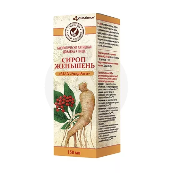 ✓ Цена на Vitascience сироп Женьшень МАХ Энерджи, 150мл указана на сайте и в мобильном приложении