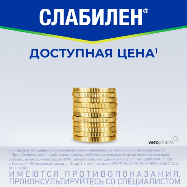 Для многих пациентов, страдающих запором нет необходимости в ежедневном приеме полной дозы, доза может быть уменьшена в зависимости от индивидуальных потребностей пациента или препарат может применяться разово по мере необходимости. Препарат Слабилен® не следует применять ежедневно без консультации врача более 10 дней. Длительный прием высоких доз препарата может приводить к потере жидкости, нарушению баланса электролитов, гипокалиемии. Головокружение и обмороки наблюдались у пациентов, принимавших пикосульфат натрия. Анализ показал, что эти случаи связаны с обмороком при дефекации (или обмороком, вызванным напряжением при дефекации), или с вазовагальным ответом на боль в животе, которая может быть обусловлена запором, и не обязательно связана с приемом препарата. Препарат содержит лактозы моногидрат. У детей старше 10 лет препарат следует применять только по назначению врача.