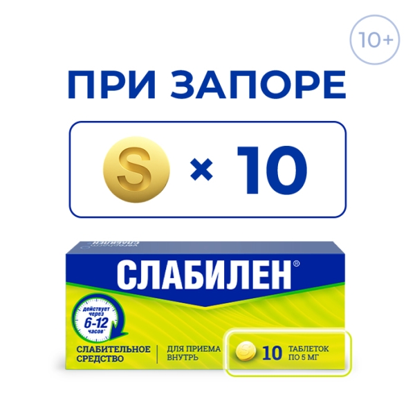 ✓ Купить Слабилен таблетки покрыт. п/о 5мг, №10 можно на сайте, в мобильном приложении и в аптеках Вита