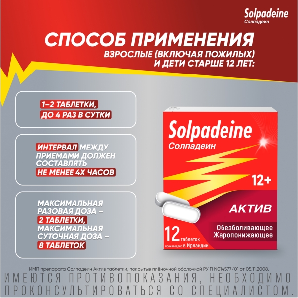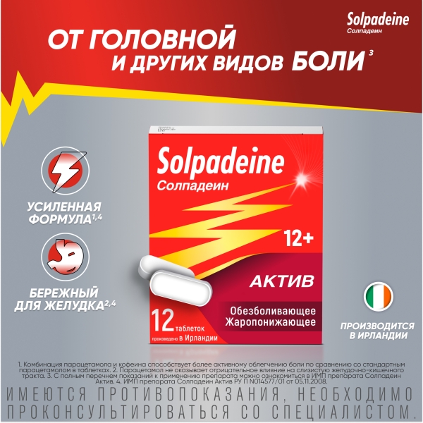 ✓ Купить Солпадеин Актив таблетки покрыт. п/о, №12 можно на сайте, в мобильном приложении и в аптеках Вита