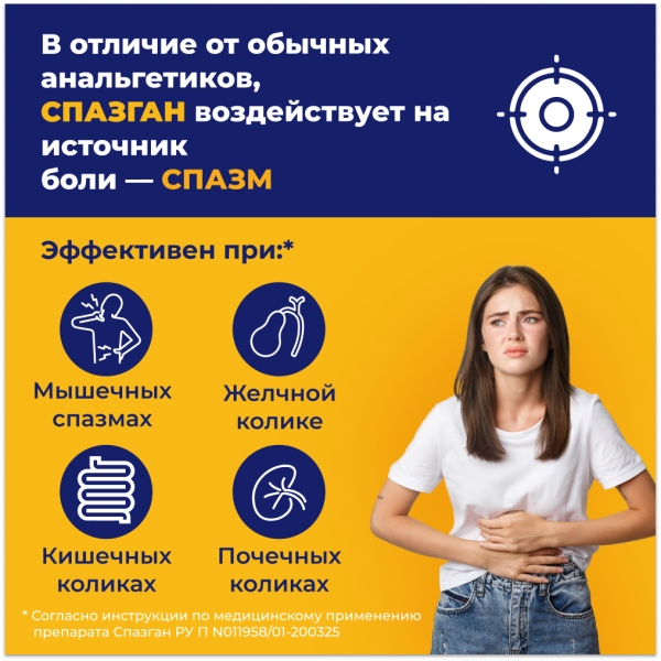 ✓ Купить Спазган таблетки 500мг+5мг+0,1мг, №20 можно на сайте, в мобильном приложении и в аптеках Вита