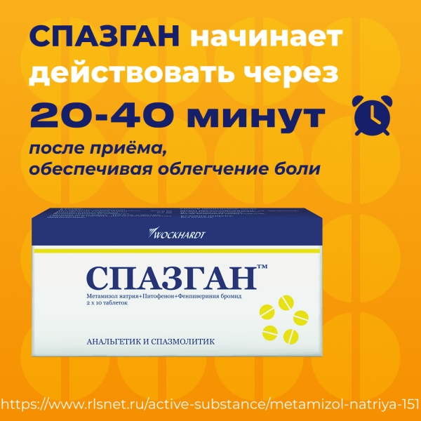 ✓ Цена на Спазган таблетки 500мг+5мг+0,1мг, №20 указана на сайте и в мобильном приложении