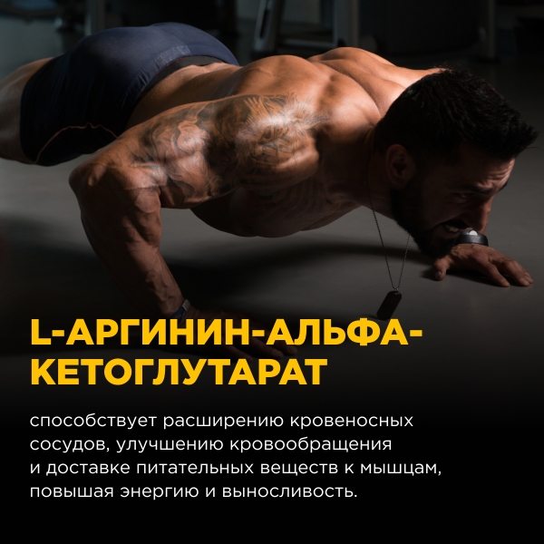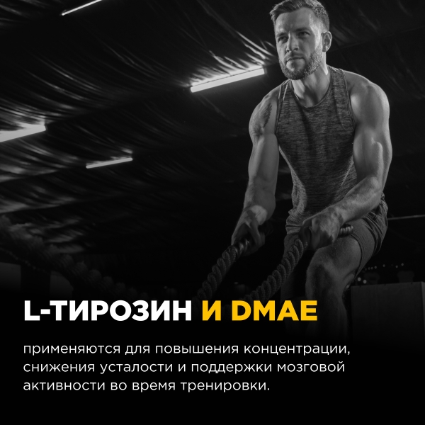 Содержит: Бета-аланин, Креатин, Аргинин, Таурин, Цитруллин, Тирозин, DMAE, Кофеин (экстракт гуараны), экстракт черного перца.