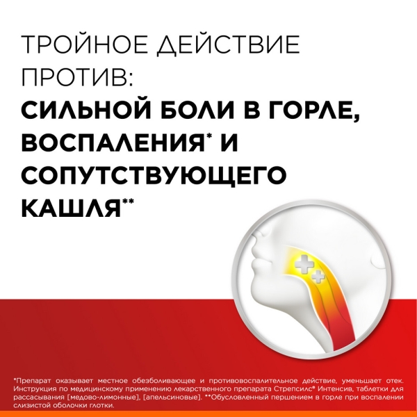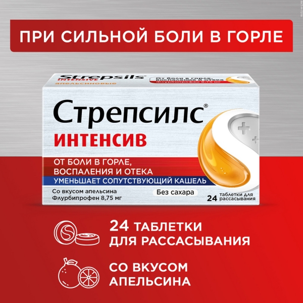 ✓ Подробная инструкция по применению Cтрепсилс Интенсив таблетки для рассасывания апельсиновый, №24