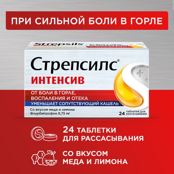 ✓ Купить Стрепсилс Интенсив таблетки для рассасывания медово-лимонный, №24 можно на сайте, в мобильном приложении и в аптеках Вита