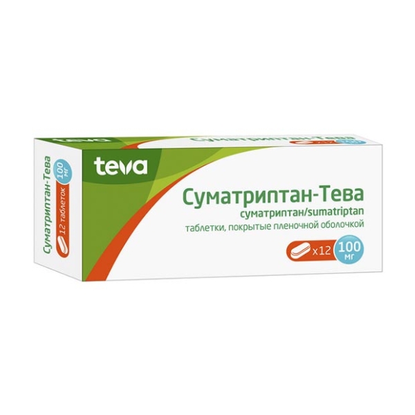 ✓ Купить Суматриптан таблетки покрыт. п/о 100мг, №12, Тева можно на сайте, в мобильном приложении и в аптеках Вита