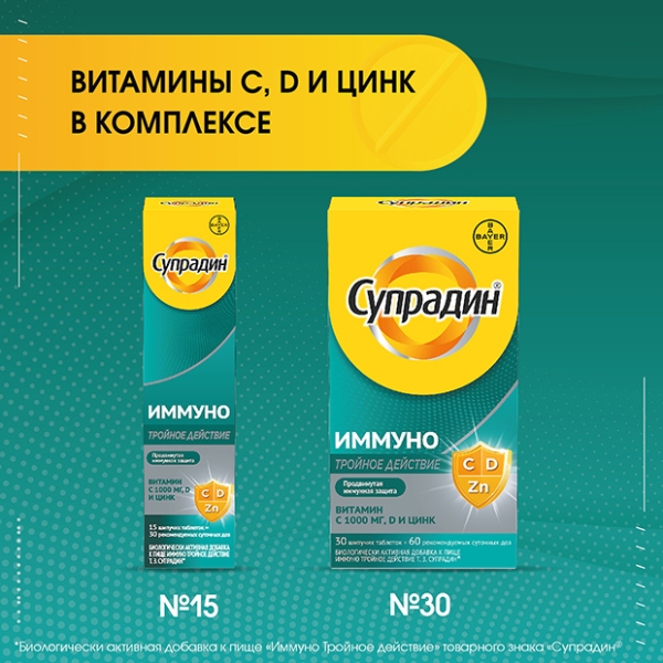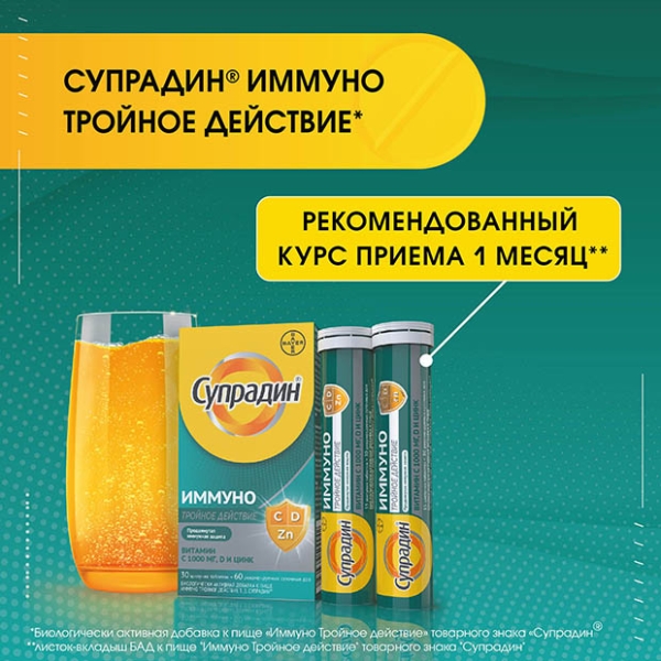 ✓ Цена на Супрадин Иммуно Тройное действие таблетки шипучие, №30 указана на сайте и в мобильном приложении