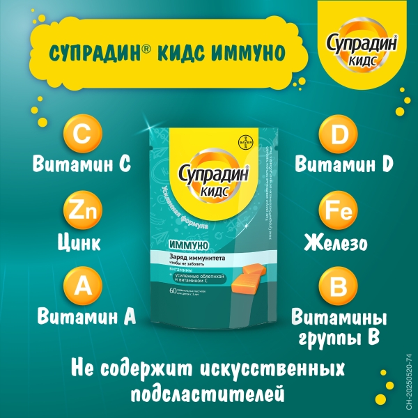 ✓ Цена на Супрадин Кидс Иммуно пастилки жевательные, №60 указана на сайте и в мобильном приложении