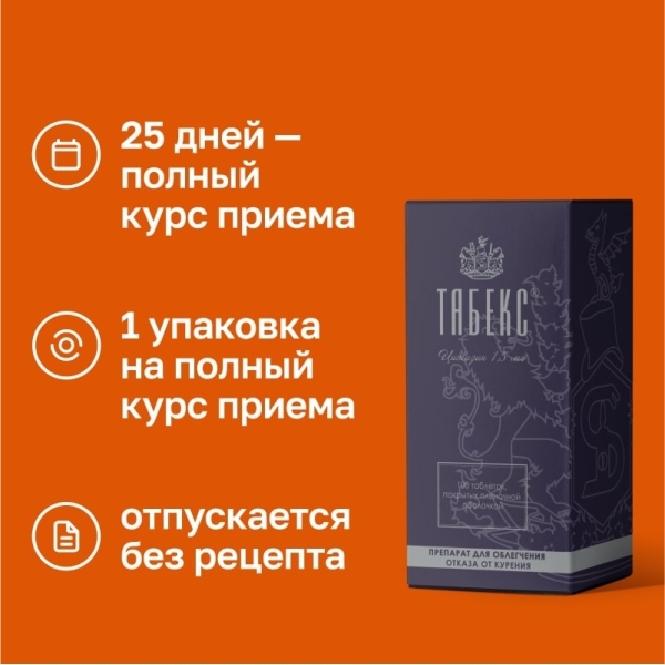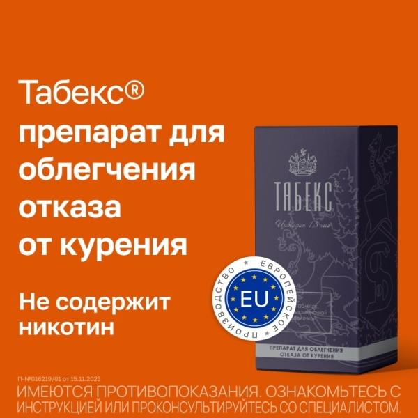 ✓ Купить Табекс таблетки покрыт. п/о 1,5мг, №100 можно на сайте, в мобильном приложении и в аптеках Вита