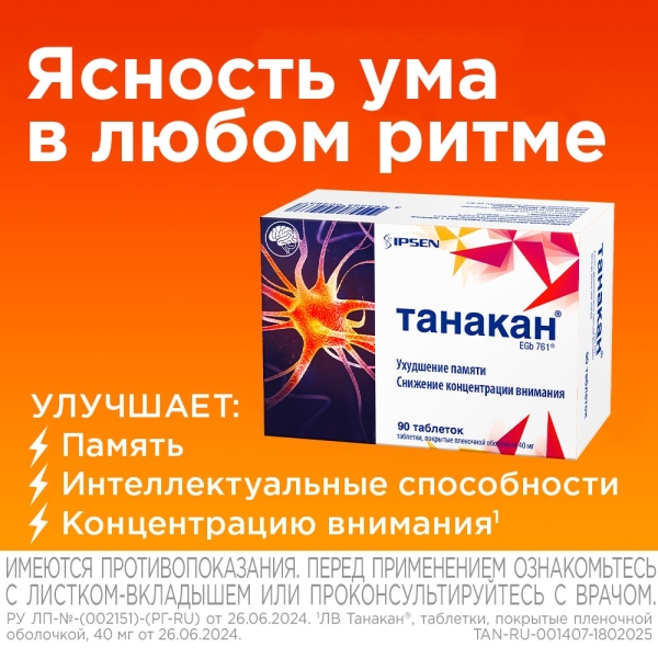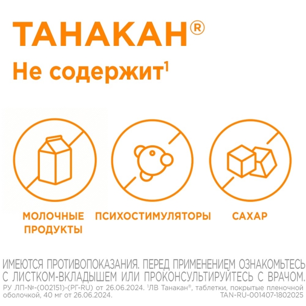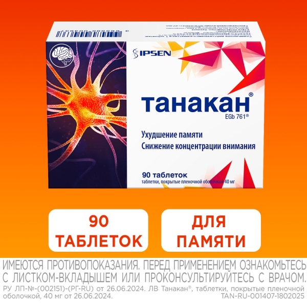 ✓ Купить Танакан таблетки покрыт. п/о 40мг, №90 можно на сайте, в мобильном приложении и в аптеках Вита
