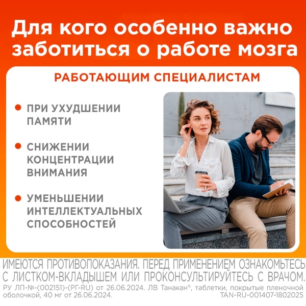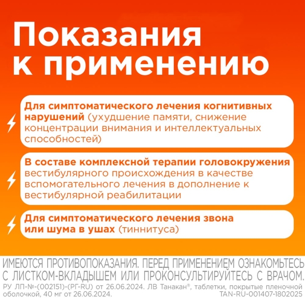 Препарат Танакан® применяют у взрослых (от 18 лет и старше):