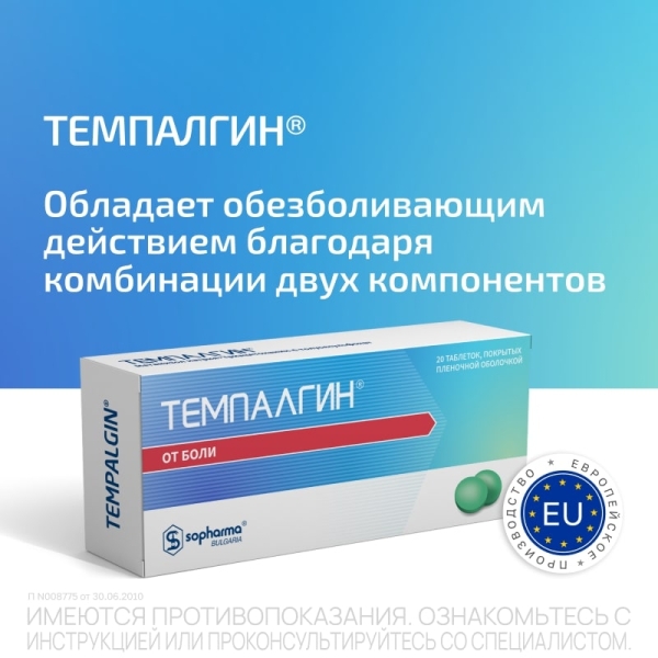 Препарат Темпалгин® – комбинированный лекарственный препарат, содержащий действующие вещества метамизол натрия и триацетонамин-4-толуолсульфонат. Он относится к фармакотерапевтической группе: анальгетики, другие анальгетики и антипиретики, пиразолоны, и обладает выраженным обезболивающим и противовоспалительным действием.