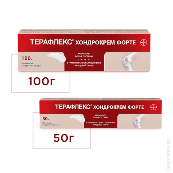 Препарат Терафлекс® Хондрокрем Форте содержит действующие вещества мелоксикам и хондроитина сульфат натрия и относится к препаратам для наружного применения при мышечных и суставных болях – нестероидным противовоспалительным препаратам (НПВП) для наружного применения.