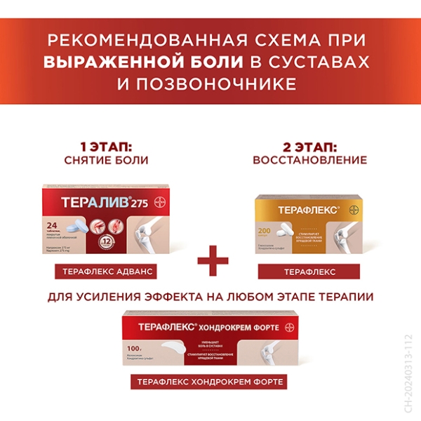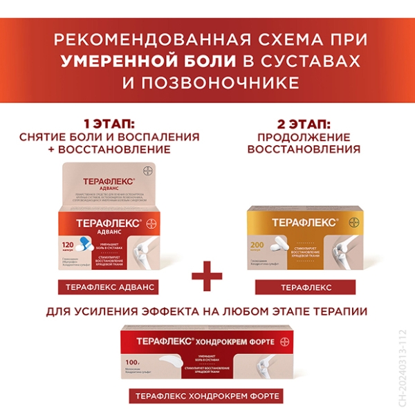 Лекарственный препарат Терафлекс® Хондрокрем Форте показан к применению у взрослых и детей в возрасте от 12 лет в составе комплексной терапии дегенеративно-дистрофических заболеваний опорно-двигательного аппарата: