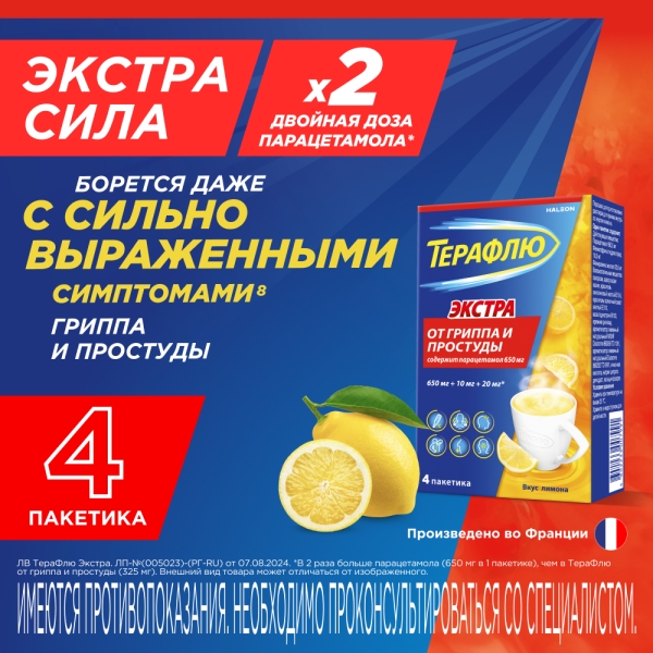 ✓ Цена на ТераФлю Экстра порошок д/пригот. р-ра д/приема внутрь Лимон, №4 указана на сайте и в мобильном приложении
