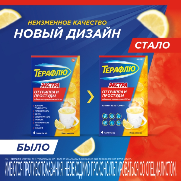 ✓ Купить ТераФлю Экстра порошок д/пригот. р-ра д/приема внутрь Лимон, №4 можно на сайте, в мобильном приложении и в аптеках Вита